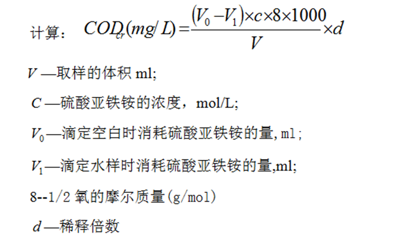 在強酸性溶液中,一定量的重鉻酸鉀氧化(以Ag+作此反應(yīng)的催化劑)水樣中的還原性物質(zhì)(有機物),過量的重鉻酸鉀以試亞鐵靈作指示劑,用硫酸亞鐵銨溶液回滴。根據(jù)用量計算出水樣中還原性物質(zhì)消耗氧的量。