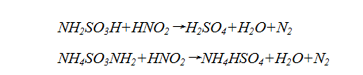 (7)有關(guān)資料介紹:水樣中 20~80mg/L的亞硝酸鹽會使COD按常規(guī)的方法無法準確測定,一般可采用氨磺酸和氨磺酸銨來消除干擾,主要是里面的氨基起作用: